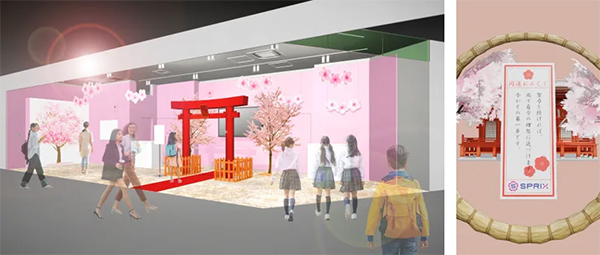 「サクラサク神社AR」は、会場に設置された鳥居越しにスマートフォンをかざすと、神社が登場し、開運おみくじを引くことができるコンテンツ。AR技術を活用することで、都心で手軽に合格祈願ができるということで、勉強や試験で遠出ができない受験生にも喜ばれそうな施策です。