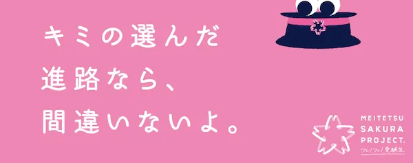 名古屋鉄道は、受験生とその受験生を支える人を応援する「MEITETSU SAKURA PROJECT.」を2025年1月5日(日)から実施。駅や電車内の隙間を活用したメッセージ広告を展開するほか、「サクラサク合格祈願入場券」の発売および「サクラサク合格(3359[サクラサクごうかく])祈願列車」が運行される予定です。