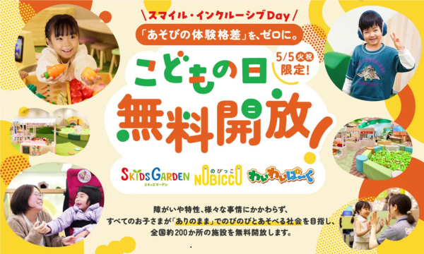 株式会社イオンファンタジーは、2026年5月5日の「こどもの日」に、全国約200カ所のプレイグラウンド施設を無料開放する「スマイル・インクルーシブDay」を実施します。