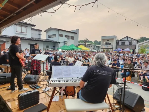 観光PR事業の一環として行われた一関市千厩町での植松氏「せんまや夜市」出演時の様子(2024年7月)