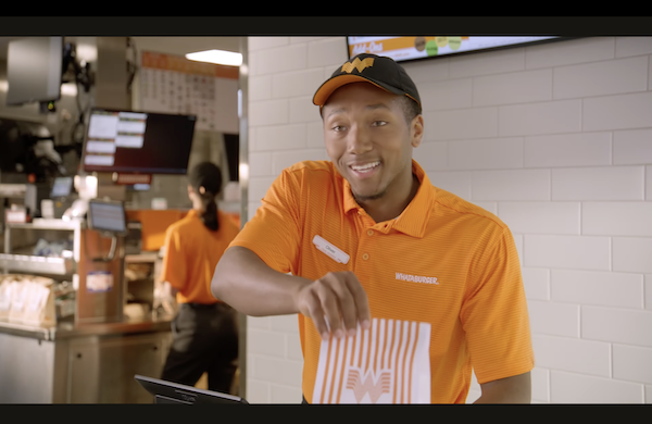 75セントという安さに惹かれ、Whataburgerの店舗を訪れたLainey Wilsonのシーンで動画は幕を上げます。笑顔でハンバーガーを受け取り退店したのかと思いきや、その直後にまさかの変装して再度ハンバーガーを求めてきたのです。1人1個という制限はあるものの、あまりにも低価格でいつものWhataburgerを楽しめるというメリットを、ユーモアを交えて表現しました。