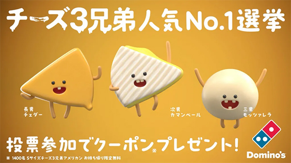 2. 3兄弟がチーズ語で公約発表?! ドミノ・ピザが人気キャラ投票キャンペーン開催