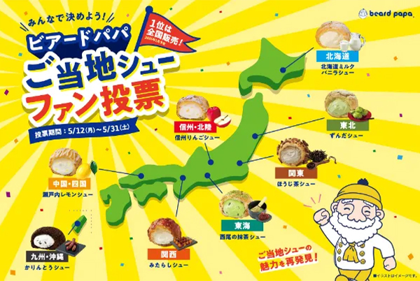 そんなビアードパパが、全国発売するシュークリームをファン投票で選ぶ「ビアードパパご当地シューファン投票」を実施しました(2025年5月31日まで)。