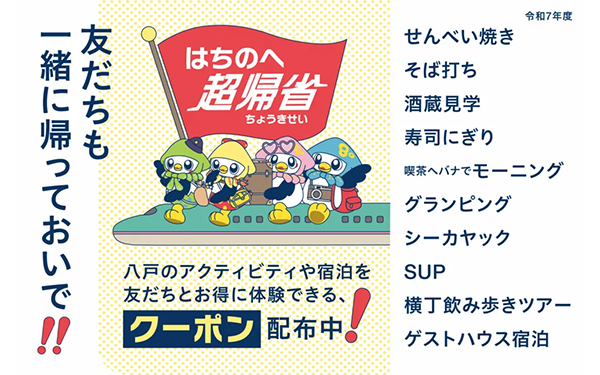 この「超帰省」は八戸市が令和7年度から実施する「八戸市超帰省応援事業」の一環として位置づけられており、市内外の人々のつながりを起点とした持続的な地域関係の構築を目指していることが伺えます。