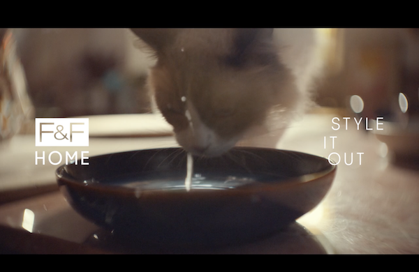 また、別のバージョンではF&Fが展開する家具や食器のホームウェアラインがフィーチャーされており、大規模な雨漏りがしているなかでも、おしゃれに雨水を受け止めることができるというギャップが印象的な内容です。いずれのバージョンも、豪華な設定なのにどこか間が抜けている脚本にすることでスタイリッシュながらも親近感が湧く、おしゃれな庶民派ブランドとしてF&Fを表現しています。