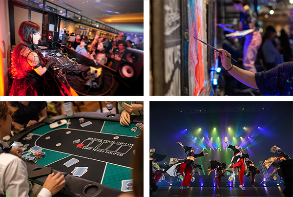 そして、さらに今年は着物×ダンスという日本の「艶やかさ」を取り入れたダンスパフォーマンスに加え、ポーカーやマジック、VR体験などゲスト自身が体験できるコンテンツが盛りだくさんになりました。それにより、演者とゲストが一体となれる空間を創り出すことを目指しています。