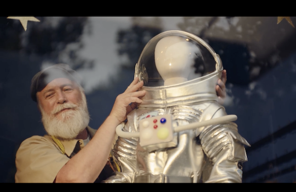 とあるお店のショーウィンドウに並ぶ恐竜の着ぐるみと宇宙飛行士の着ぐるみ、どっちが欲しいかで悩んでいる少年の願いを叶えるために店主が2つ繋ぎ合わせた着ぐるみを作るという、単純ながらもしっかりとメッセージ性が伺える内容になっています。