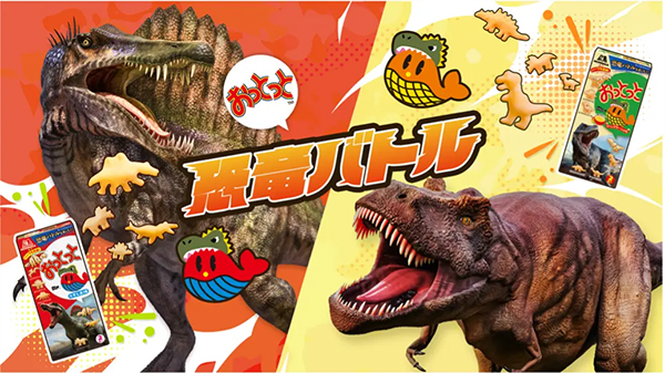おっとっと恐竜パッケージ、13種発売で動画コンテンツと交通広告展開