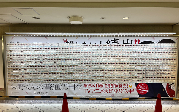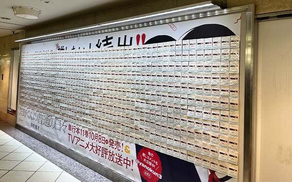 原作マンガからアニメへと拡がった作品の魅力を、視覚だけでなく手にとる体験を通じて訴求する仕掛け広告となっています。