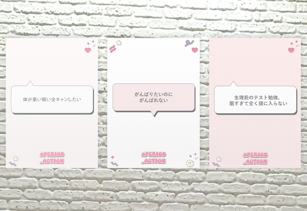 この企画は、株式会社ピーチ・ジョン協力のもと、生理に関する課題や悩みに共感し合いながら、自分を大切にできるきっかけやヒントを得られる機会づくりを目指すものです。2025年3月8日(土)から16日(日)に、国際女性デー(3月8日)にちなんで実施した参加型展示イベント「SHIBUYA109 “GIRLS” DAY」でも、生理に関する声が多く寄せられたことから、「1人で悩まない社会を、若者の声からつくる」という想いを形にしました。