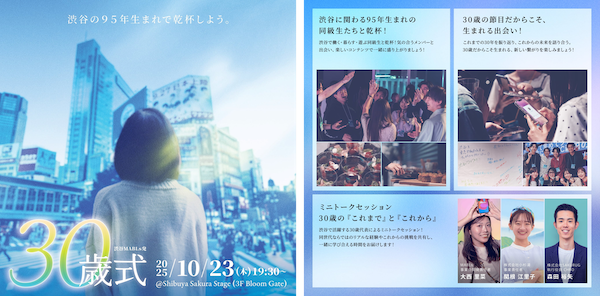 当日は、渋谷勤務または在住の30歳100人が集まり、未来への想いを寄せ書きで共有します。さらに「30歳の“これまで”と“これから”」をテーマに、渋谷で活躍する同世代のゲストが登壇し、リアルな経験やこれからの挑戦を語るミニトークセッションも予定しています。