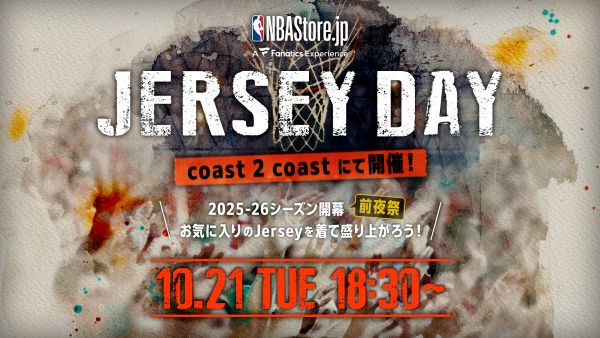 NBAグッズの公式ライセンシーとしてNBA公式オンラインストア「NBA Store Japan」を運営するファナティクス・ジャパン合同会社は、NBAファン向けイベント「NBA Store Japan Presents. NBA Jersey Day」(以下、ジャージーデー)を2025年10月21日(火)に開催します。会場は、東京都渋谷区神宮前にあるバスケットボールファンが集うカフェ「Coast 2 coast」で、抽選で選ばれた30人のNBAファンが参加します。