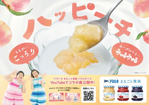 アヲハタ株式会社は、フルーツスプレッド「アヲハタ まるごと果実」の魅力を伝えるため、音楽ユニット「ケロポンズ」とタイアップしたオリジナル動画「まんま もも」を2025年10月6日(月)から期間限定で公開しました。ケロポンズは、子ども向け音楽や体操の制作を手がける2人組で、保育園や幼稚園を中心に高い人気を誇ります。