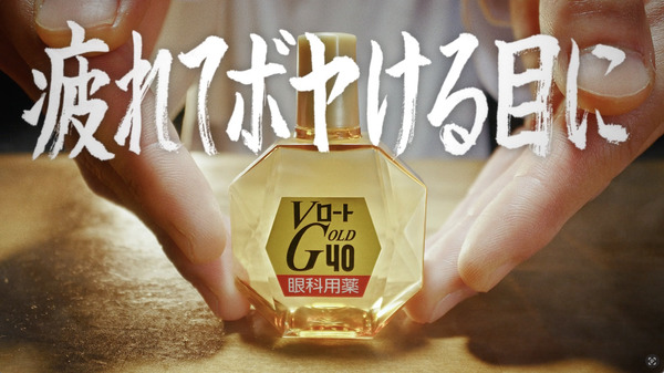TVerやYouTubeなどでオンエアされているロート製薬の目薬、「Vロートゴールド40」のWeb CMがユニークです。そのCMは、まるでラーメン屋のような世界観で展開される「こってり、たっぷり」篇。店主風の男性が登場して「こってり!!たっぷり!!ありがとうございまーす!!!」と豪快に語る姿は、医薬品のCMとは思えないインパクトを与えます。