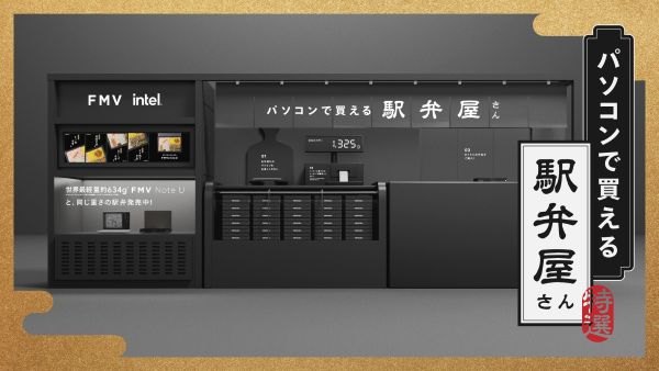 ポップアップストアで販売されるのは、PCではなく“食べられるパソコン”──その名も「FMVentoU(エフエムベントウ)」。約634gの軽さを再現したというユニークな駅弁で、最新のノートPCの魅力を訴求します。