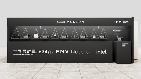 さらに、イベント会場には、FMV Note Uと同じ重さの商品を展示する「634gミュージアム」を併設しました。たとえば、缶ビール6本分、文庫本10冊分──そんな身近なモノで新製品の重さを視覚化し、FMV Note Uの軽さをリアルにイメージさせます。