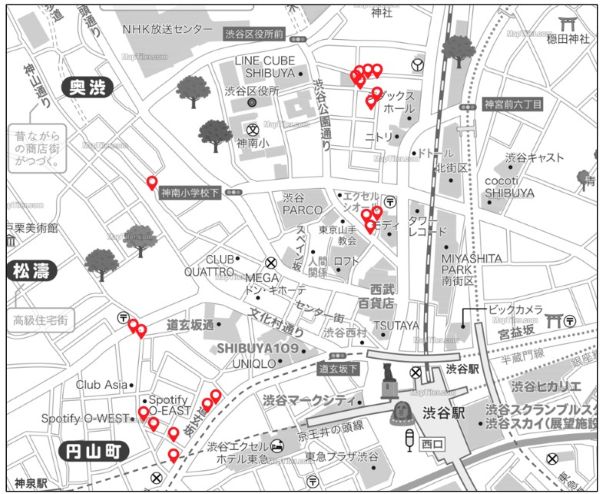 ──センター街など渋谷のランドマークにあたるエリアや、円山町のライブハウスやクラブが立ち並ぶ通りなど、23カ所にOOHを展開しました。掲出場所はそれぞれどうやって選ばれたんですか?