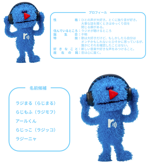今後も末長く親しまれるキャラクターになることを願って、radikoに関わるスタッフが考案した100を超える名前候補案から、民放ラジオ各局のみなさんに投票によって選び抜かれた5つの候補案を決定。