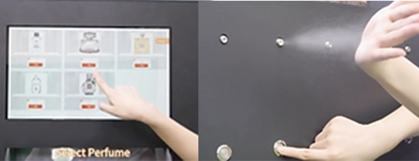 「いつでも気軽に“香りを買う”」をコンセプトに、香水噴射機1台に5種類の香水が設置されており、手頃な価格でその日の気分にあわせて気軽に高級香水を身にまとえます。