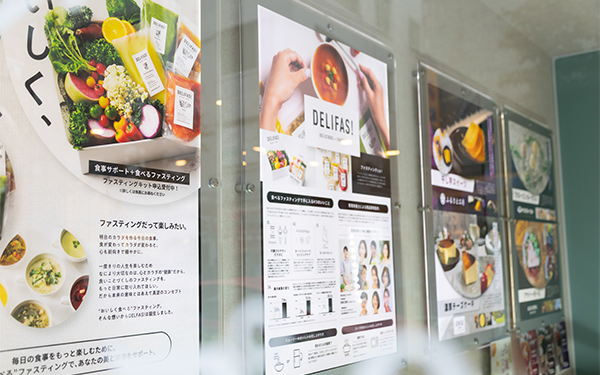「ファスティング」は、一定期間食べ物を採らないことで消化活動を休ませ、カラダを一旦リセットする注目の健康法です。店内にはファスティングについての説明パネルも設置され、じっくり確認しながら自分に合う商品を吟味することができます。