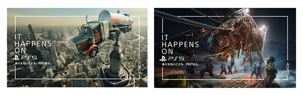 PS5のグローバルキャンペーン「It Happens on PS5」は、日本時間の2025年11月3日(月)に公開されました。CM映像では、遊びの限界を超え、さまざまな体験をユーザーにもたらすPS5の「余波」が現実世界に漏れ出し、ありえない現象が起こった様子を描くことで、「ありえないことも、PS5なら。」を表現しています。