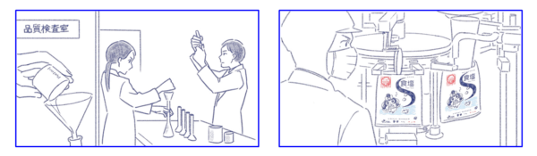 映像は、鉛筆画調のイラストが連なり、塩の旅路を追う流れ。日本の海水を原料とする製造工程、品質管理に取り組む姿、物流を担う人びとの仕事、そして家庭で使われるシーンが続き、塩が生活に届くまでの過程をやさしいトーンでまとめました。料理に使われるところや、漬物を仕込むシーンなど、日常で自然に使われている様子が印象的です。
