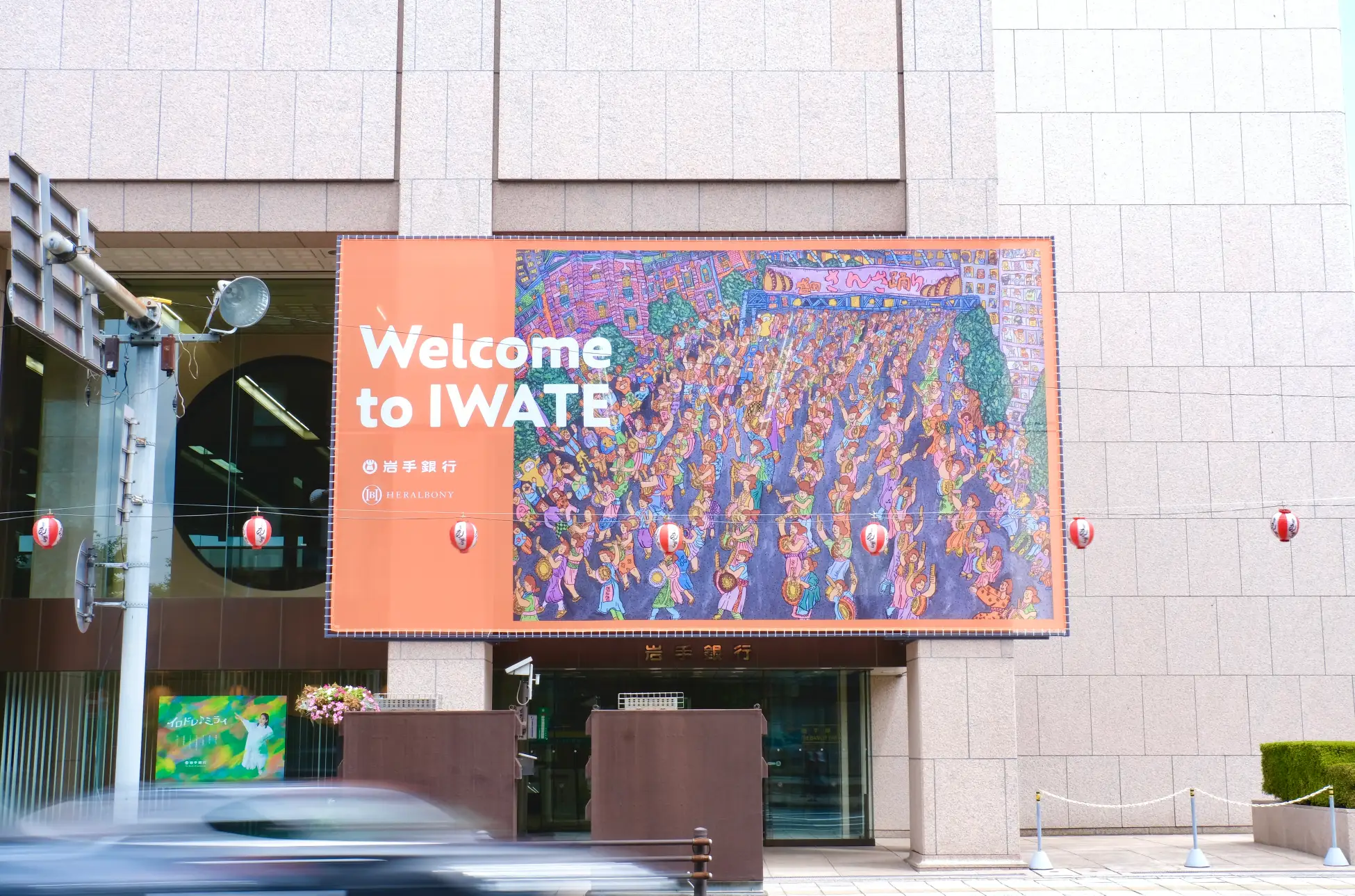 さんさ踊りのメイン会場となる中央通りを作家のアートバナーが飾り、街を行き交う人々がアートで彩ったうちわを手に祭りを楽しむ。異彩が溶け込んだ街の景色を、岩手の地から全国に広めていこうという取り組みです。