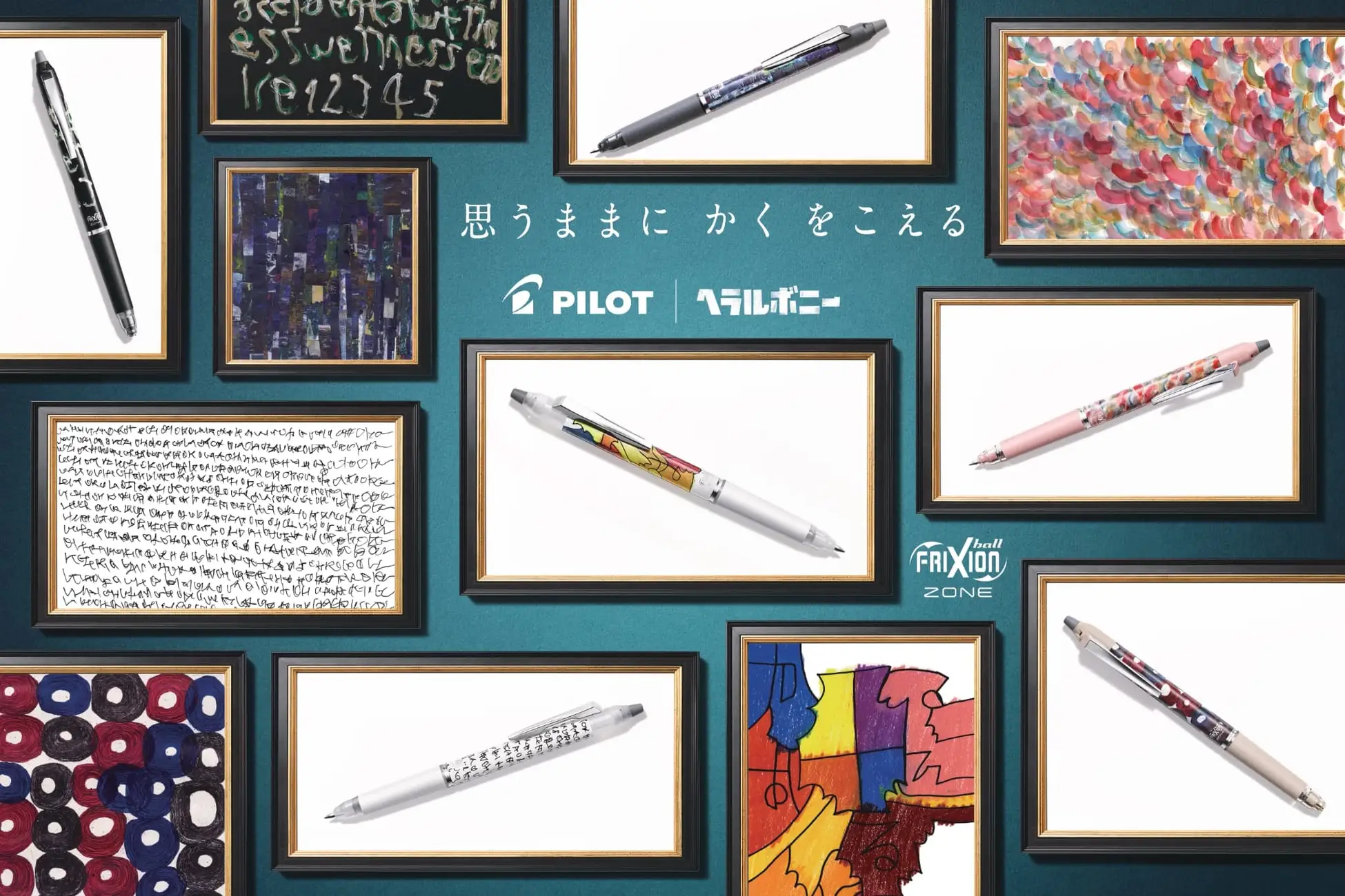1918年の創立以来、PILOTは筆記具のリーディングカンパニーとして、さまざまな「かく」体験を通して、表現の可能性を切り拓いてきました。ヘラルボニーとPILOTは、「思うままに かく をこえる / Creatively Beyond Writing」という共通のテーマのもと、2024年に発売された第1弾「フリクションボールノックゾーン×ヘラルボニー」のコラボレーションを発表。すべての柄で予想を大きく上回る販売を記録し、早期に完売する店舗が出るなど大きな反響を得られたそうです。
