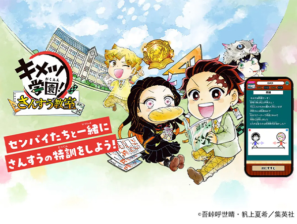 ストーリア株式会社は、株式会社集英社の協力のもと、「最強ジャンプ」掲載の『鬼滅の刃』スピンオフ漫画『キメツ学園!』とコラボレーション。キャラクターと一緒に算数の勉強ができる学習アプリ「キメツ学園! さんすう教室」を、2025年9月29日(月)にリリースしました。