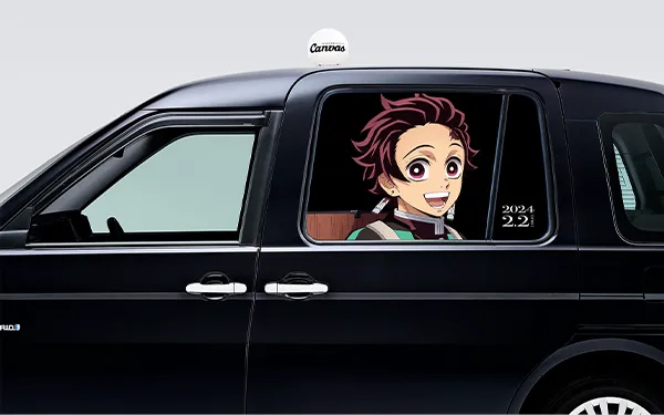 『ワールドツアー上映「鬼滅の刃」 絆の奇跡、そして柱稽古へ』とコラボした「鬼滅の刃タクシー」では、2024年1月29日(月)から2月11日(日)までの期間中、車窓に主人公の竈門炭治郎を投影しました。また、乗車した車内タブレットでは『プロモーションリール2024』を放映。さらに、タクシーアプリ「S.RIDE」から「鬼滅の刃タクシー」を指定して配車することができるようになっています。