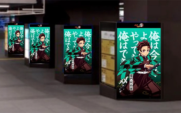 JR秋葉原駅構内に32面ある柱デジタルサイネージに、「ダイドー 鬼滅の刃アイスラテ」「ダイドー 鬼滅の刃みかん水無糖」の全32種類のパッケージデザインが登場。アニメ『鬼滅の刃』に登場するあのシーン、あの台詞を大胆に繋ぎ、作品の中で繰り広げられてきた、これまでの想いを振り返ることができます。