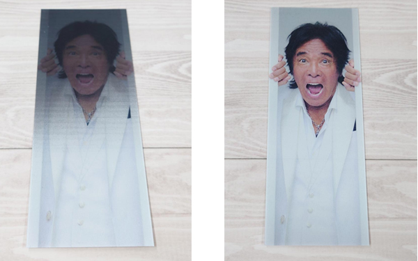 さらに、開催期間中に店内の商品2,000円(税込)以上購入すると先着でプレゼントされるのが、松崎しげるレンチキュラーしおりです。一見真っ黒な見た目ですが角度を変えると、松崎しげるさんが熱く登場する仕組みとなっています。