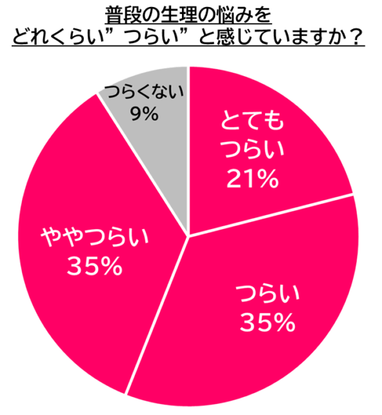 16〜49歳の女性3,000人調査で、生理の悩みを「つらい」と答えた人が91%、さらに「基本的に我慢している」と答えた人が38%にのぼったことを受け、生理の悩みを可視化し、婦人科受診へのハードルを下げることを目的とした取り組みです。