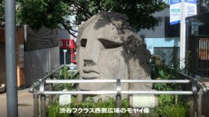 渋谷のモヤイ像は、45年前に新島村からの寄贈品として設置されました。建設当時は原材料である抗火石本来の白さで輝いていましたが、長年紫外線に晒されたことで現在の灰色の姿となっています。