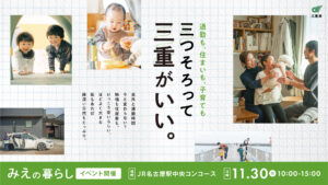 イベントでは、「三つそろって三重がいい」をコンセプトに、名古屋駅や周辺都市への「通勤アクセスの良さ」や、ゆったり暮らせる「住環境」、公園の多さや人気のレジャー施設など「豊かな環境のもとで子育てができる」という、三重県北勢エリアの魅力を訴求します。