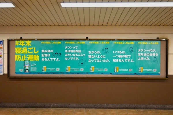 寝過ごしの聖地への広告、今年は関西にも ヤッホーブルーイングの年末寝過ごし防止運動