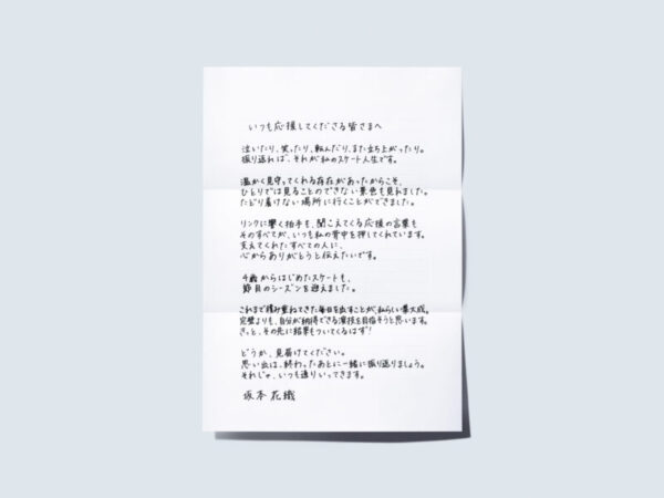 掲出された手紙には、「泣いたり、笑ったり、転んだり、また立ち上がったり。振り返れば、それが私のスケート人生です」と始まり、拍手や応援の声がいかに自分の力になってきたかが綴られています。