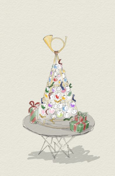 ツリーのトップで輝く星は、ホテルが新たな一歩を踏み出した瞬間を伝える紙面から制作されたもの。過去の記録が、未来への道標として光を放つさまを表現しています。ツリーを飾る銀の球体オーナメントは、紙面に刻まれた出来事や人々の記憶、その間を絶え間なく流れる時間を映し出す“鏡”をモチーフにしました。