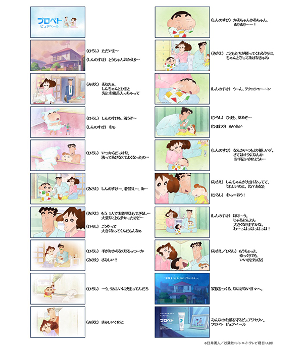 クレヨンしんちゃんのひろしとみさえが、それぞれ子ども時代の記憶に思いを馳せつつ、わが子との限りある時間を慈しむ姿を描いた今回の広告施策。誰もが親になる前には、自分自身が子どもとして親と接してきた歴史があります。そんなシーンを描くことで、「生涯にわたる肌ケア」を掲げる、プロペト ピュアベールaのブランド価値を表現しています。