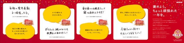 同企画は、日常的に購入する食品を「ちょっとしたごほうび」と結びつけ、体験型の広告やサンプリングに繋いだ点がポイントです。年末という季節性を味方につけながら、印象的なプロモーションに展開した事例です。