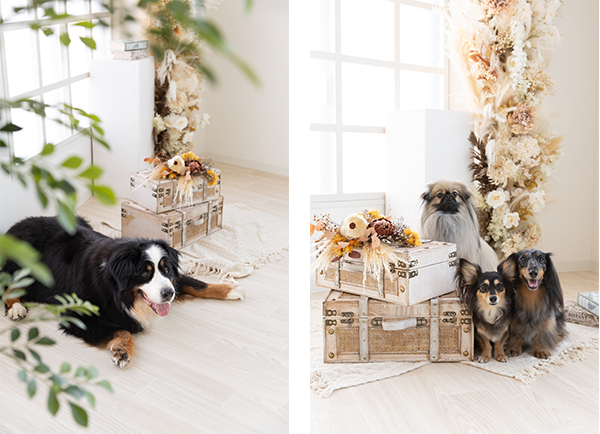 そして、今回その充実を図るべく、西宮市でより広いスタジオへの移転を実施しました。新スタジオは、犬の動きを妨げない50㎡の広さと滑りにくい床材が採用されており、大型犬だけでなく、多頭での撮影や活発に動き回る犬が被写体となったときでも、のびのびとした姿を撮影できる環境が整えられています。