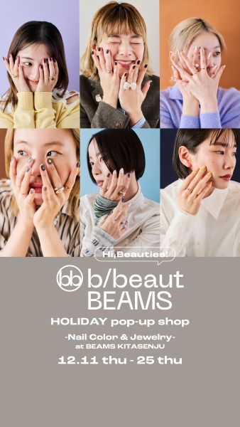 セレクトショップ大手のビームスが、ポップアップショップ「Hi,Beauties! b/beaut BEAMS HOLIDAY pop-up shop ~Nail Color & Jewelry~」を、2025年12月11日(木)から25日(木)にビームス 北千住店(東京都足立区・ルミネ北千住内)で開催します。