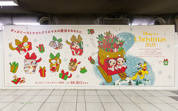まずは、12月1日(月)から7日(日)にかけて、東京・新宿と大阪・梅田エリアでクリスマスをテーマにしたディズニーストアのピールオフ広告が掲出されました。