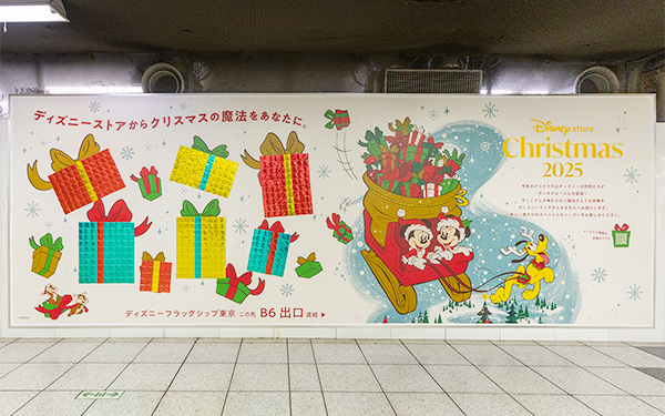 まずは、12月1日(月)から7日(日)にかけて、東京・新宿と大阪・梅田エリアでクリスマスをテーマにしたディズニーストアのピールオフ広告が掲出されました。
