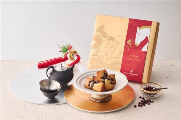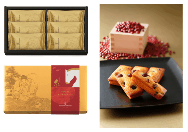 「えびすフィナンシェ」は、北海道産大納言小豆を使用した大納言納豆をのせ、素材へのこだわりと製法を維持しながら、縁起性という付加価値を加えています。また、えびす様をモチーフにした金色を基調とする紅白のパッケージは、迎春にふさわしい分かりやすさを備え、店頭でも視認性の高いデザインとなっています。