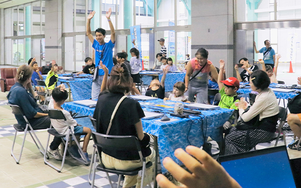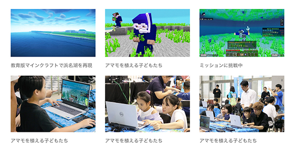 体験した子どもたちは会場に設置された20台のPCから、浜名湖を再現したマイクラワールドにアクセス。子どもたちは1人ひとりがアマモ植栽ミッションに挑戦し、魚や生き物が増えていく様子を体験しました。「アマモをたくさん植えるのが楽しかった!」などの声が多く寄せられ、親子で前のめりに参加する姿も目立ったといいます。