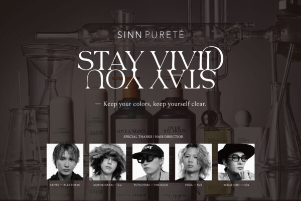 今回のビジュアル制作には、ARIPEE(ALLY TOKYO)、MOTOKI SAKAI(iLe.)、YUTA OTEKI(THE SLICK)、FUGA(Null)、YUDAI HORI(fifth)といったヘアスタイリストが、それぞれSINN PURETÉの香りと質感からインスピレーションを得て、スタイリングを行ったそうです。