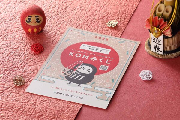 2023年から続けている年賀状企画「KOMみくじ」は、新年の運試しとして楽しめる仕掛けです。コムデザインラボから届く年賀状に記載されたQRコードを読み込み、もしくは同社公式サイトの特設ページにアクセスすると、おみくじを引くことができます。