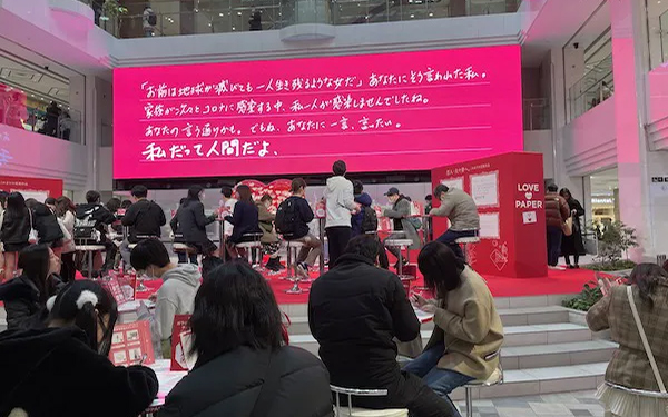 日本製紙連合会は、「片思いの相手」「恋人・夫婦」「家族」「友達」などの大切な思いを伝えたい相手にラブレターを綴る「ラブレターイベント2025 バレンタインデーは、手紙を書こう。」を大阪と横浜で開催。大阪は「グランフロント大阪 ナレッジプラザ」にて2025年2月1日(土)と2025年2月2日(日)の2日間、横浜は「横浜ランドマークプラザ サカタのタネ ガーデンスクエア」にて2025年2月8日(土)から2025年2月11日(火・祝)までの期間で実施されました。