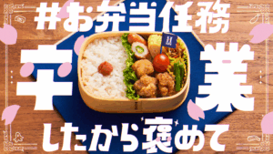 キャンペーン期間である1月と2月は、子どもの高校卒業を前に、高校最後のお弁当をSNSに投稿する親が急増する時期であることに着目。本キャンペーンを通じて、SNS上でお弁当づくりを頑張った自分を労い、称え合うムーブメントを創出する狙いがあるようです。